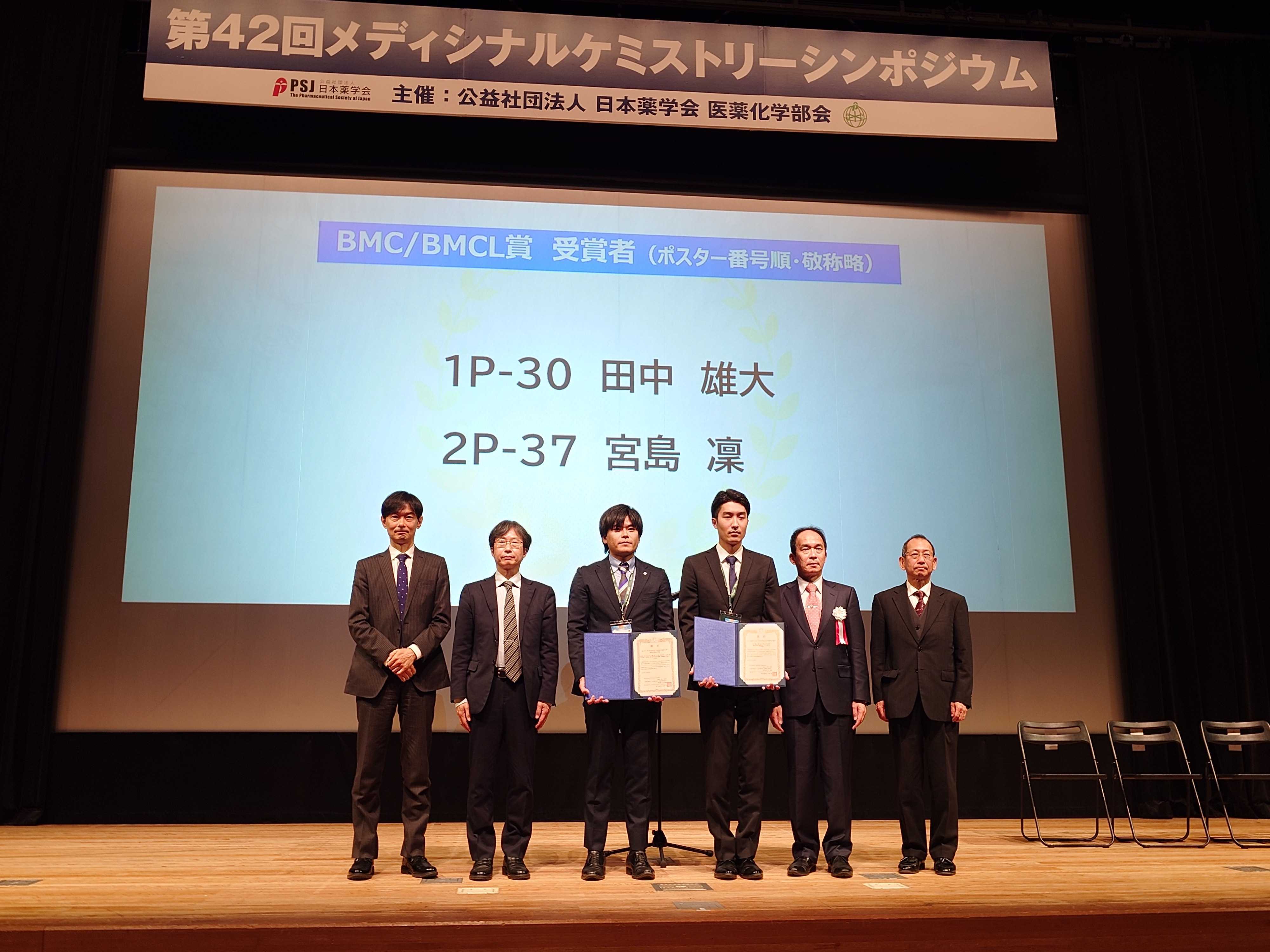 田中雄大さん(D2)が第42回メディシナルケミストリーシンポジウム(徳島)にてBMC/BMCL賞を受賞しました。おめでとうございます。 演題名: リジンを標的とした共有結合性KRAS阻害剤の開発